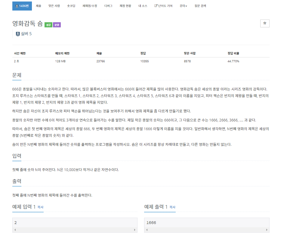 링크: www.acmicpc.net/problem/1436