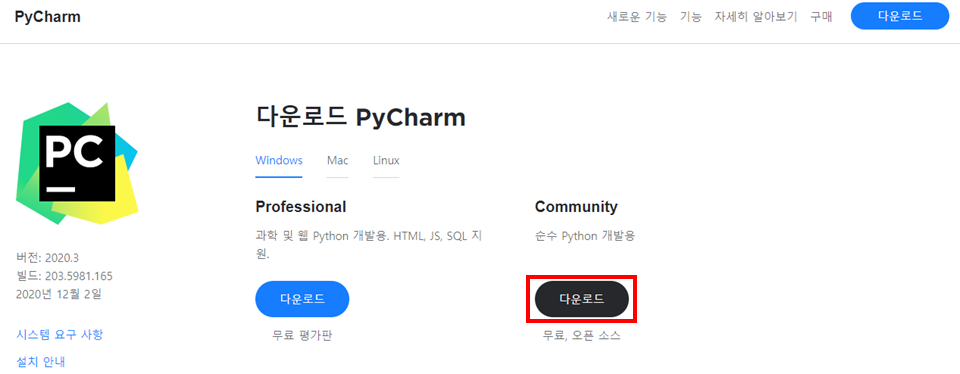 파이참 설치: