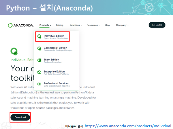 아나콘다 설치: https://www.anaconda.com/products/individual