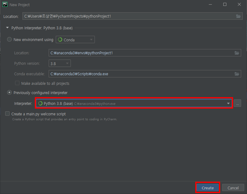 파이참(PyCharm) 설치 및 아나콘다 가상환경 적용