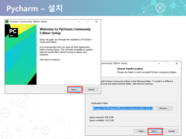 다음은 python개발에 필요한 IDE인 파이참 설치입니다.